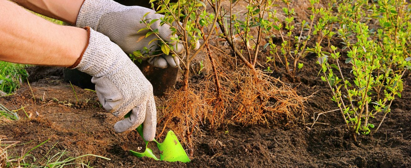 - Ajoutez ensuite un peu de terre ameublie au fond de la tranchée ou du trou puis disposez vos arbustes à distance voulue et à hauteur du collet (limite entre les tiges et les racines).