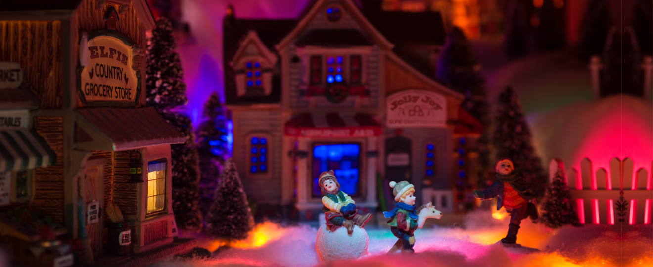Bien que pouvant trouver sa place dans la maison à toute époque de l’année, le village miniature est très souvent associé à Noël, et pour cause : la plupart des maisons et personnages les plus courants représentent cette période de l’année.