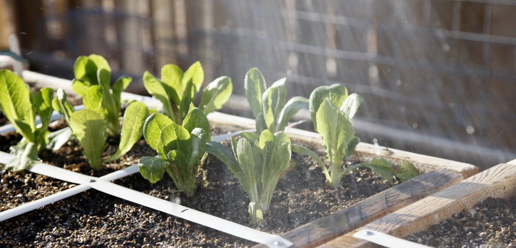 - L’arrosage : Il doit être régulier, surtout durant la période estivale, et plus encore dans les bacs surélevés, encore plus soumis à la déshydratation. Préférez les arrosages du matin, qui seront appréciés des cultures et éviteront la multiplication des maladies cryptogamiques dues à une humidité nocturne excessive. Arrosez à l’eau de pluie et adaptez vos apports à vos cultures. L’arrosage peut être plus performant avec l’épandage d’un paillis, qui évite l’évaporation du sol tout en empêchant les adventices de germer. Choisissez des paillis fins comme les paillettes de lin ou de miscanthus, ou encore des feuilles mortes préalablement séchées.