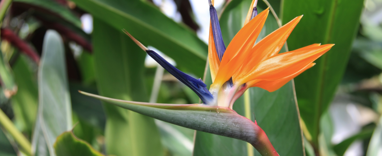 Plus connu sous le nom d’Oiseau de paradis, le Strelitzia reginae est surnommé ainsi en raison de la forme si particulière de son inflorescence. Gracieuse et colorée à la manière d’un oiseau exotique, c’est une particularité des plantes de la famille des Strelitziacées, qui ne comporte que trois genres. Ces plantes sont souvent apparentées aux Bananiers mais avec une floraison bien différente qui les caractérise.