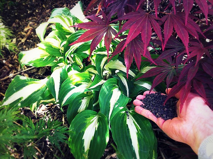 N’épandez jamais d’engrais chimiques ou osmocotes qui brûleraient le système racinaire et pourraient tuer vos hostas. Evitez aussi les engrais trop riches en azote qui encouragent une forte pousse des feuilles les rendant ainsi plus fragiles.