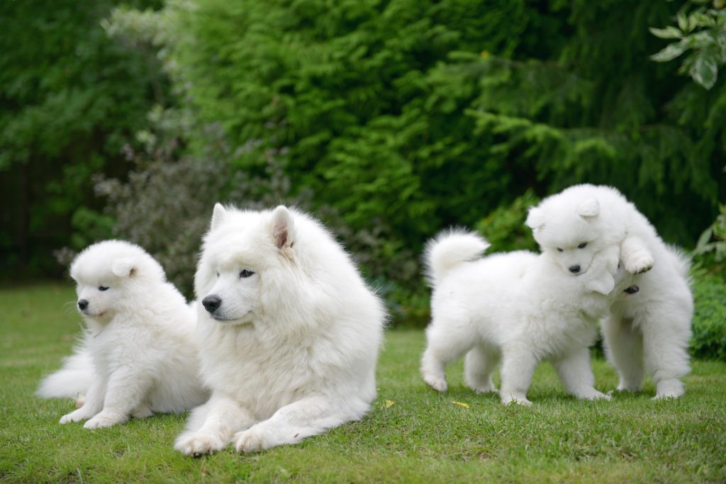 La première saillie d’une chienne Samoyède peut théoriquement avoir lieu à partir de 12 mois, lors de la deuxième ou troisième chaleur. Cependant, il est préférable d’attendre qu’elle ait au moins 18 à 24 mois pour que son développement physique et psychologique soit complet. Il est déconseillé de reproduire une chienne après l’âge de 8 ans. Son cycle de gestation peut varier légèrement d’une femelle à l’autre et peut aller de 58 à 65 jours, période durant laquelle les exercices physiques et les activités doivent être modérées. Au début de la grossesse, la chienne peut avoir des nausées et des vomissements, des troubles de l’appétit, il faudra alors adapter son alimentation.